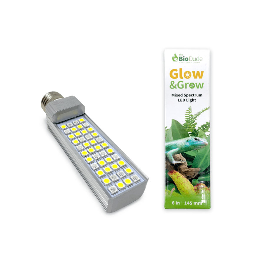 The next generation of vivarium lighting. These sleek, aluminum cast LED lights are great for lighting your vivariums/terrariums. This 6" LED has diodes that emit 2050 lumens and 6,500 kelvin each. This bulb has the red and blue diodes in them which is very important for the longevity of your plants. The vent on the front pushes all the heat away from the inside of your vivarium, preventing your vivarium from getting to hot. This LED fits perfectly into the Zoo Med/Exo Terra canopies. We recommend purchasing this light with the Bio Dude's 6' cord adapter if you do not have the canopy.