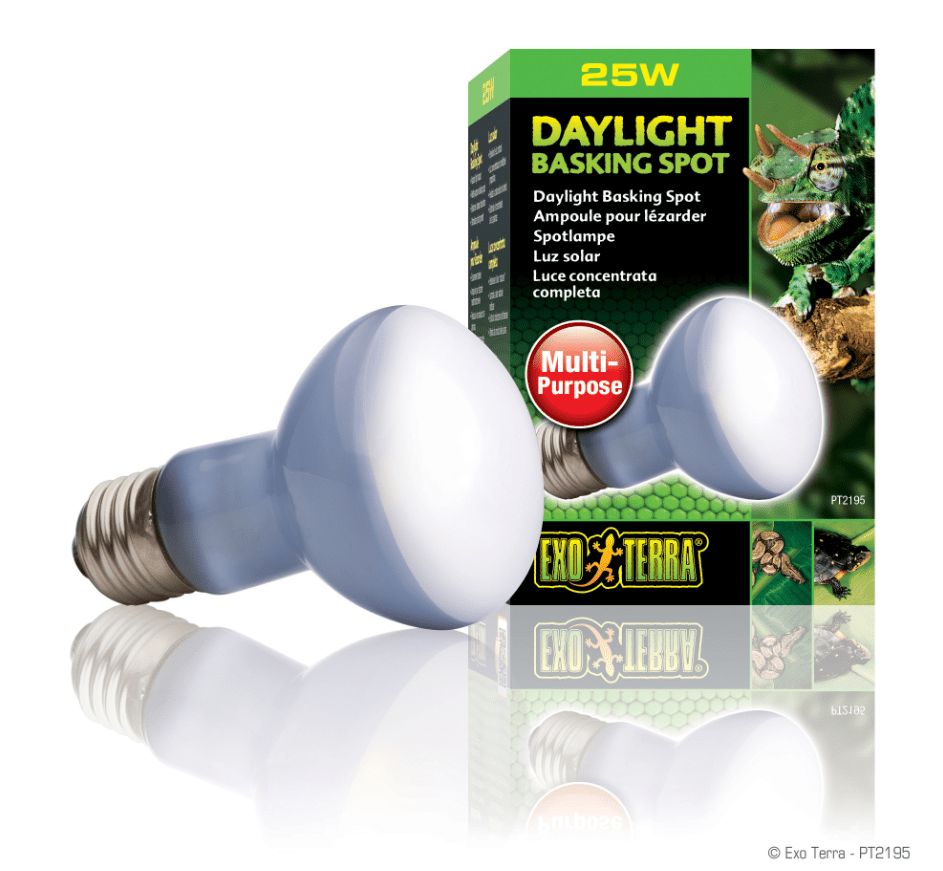 A broad-spectrum daylight spot lamp with a Neodymium sleeve. The spectrum is ideal for plant's photosynthesis and the UVA (ultraviolet A) light contributes to reptiles' physiological well-being.